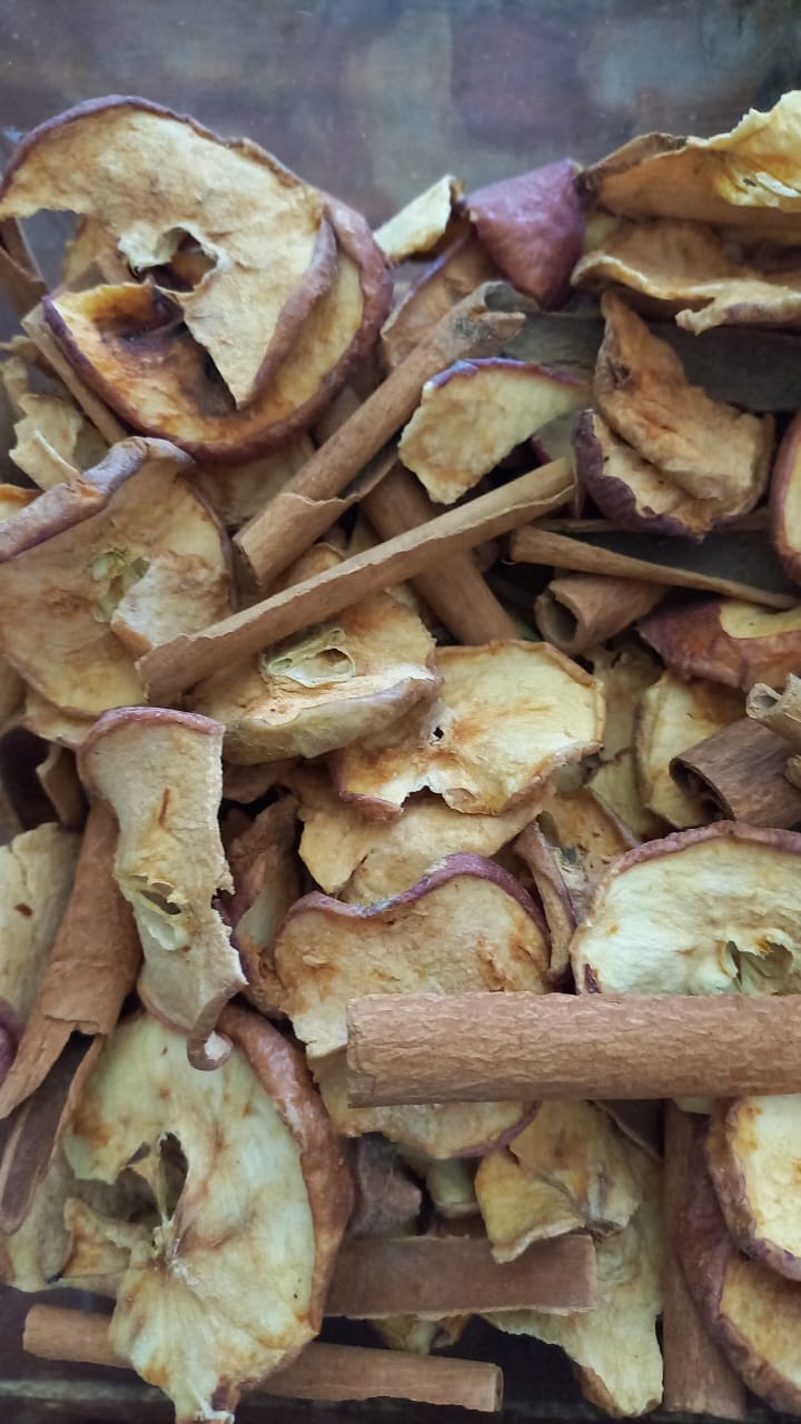 INGREDIENTES: Maçã fatias desidratadas, canela de java.