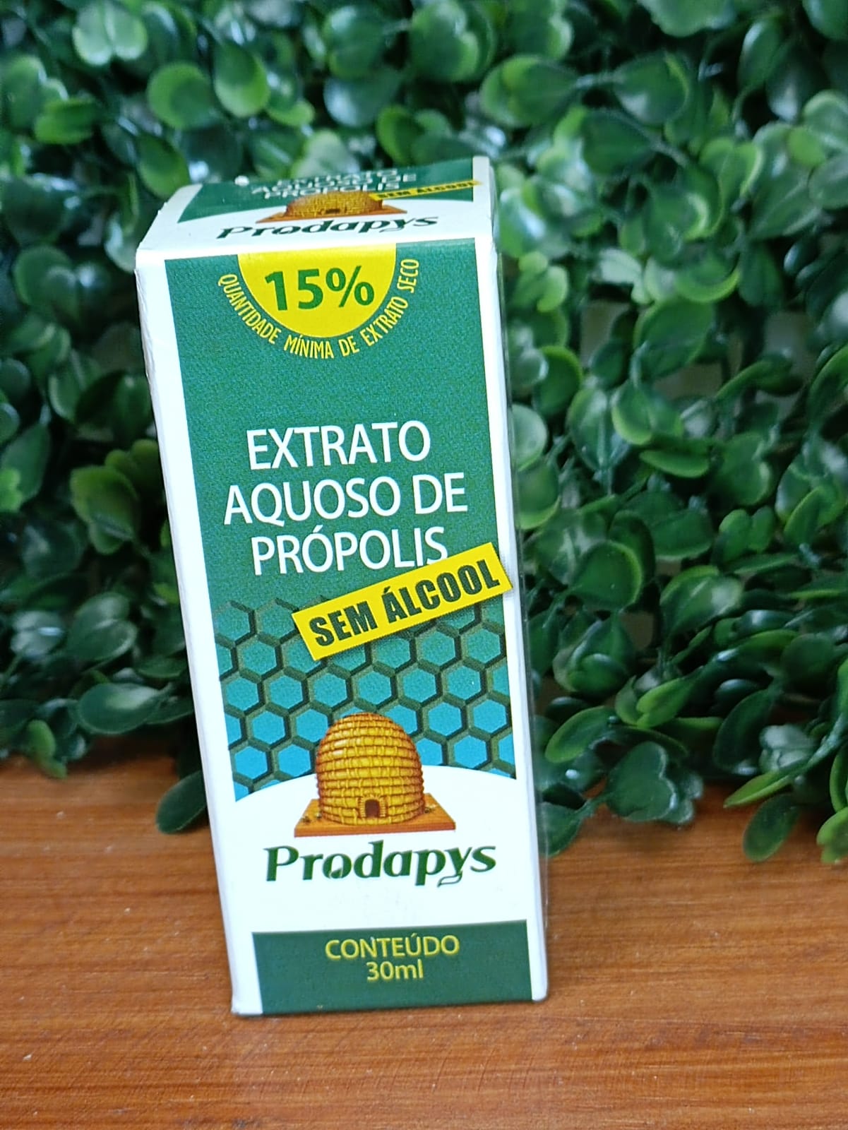 Ingredientes : Água purificada e extrato de própolis sem álcool 15% - Marca Prodapys 30ML.